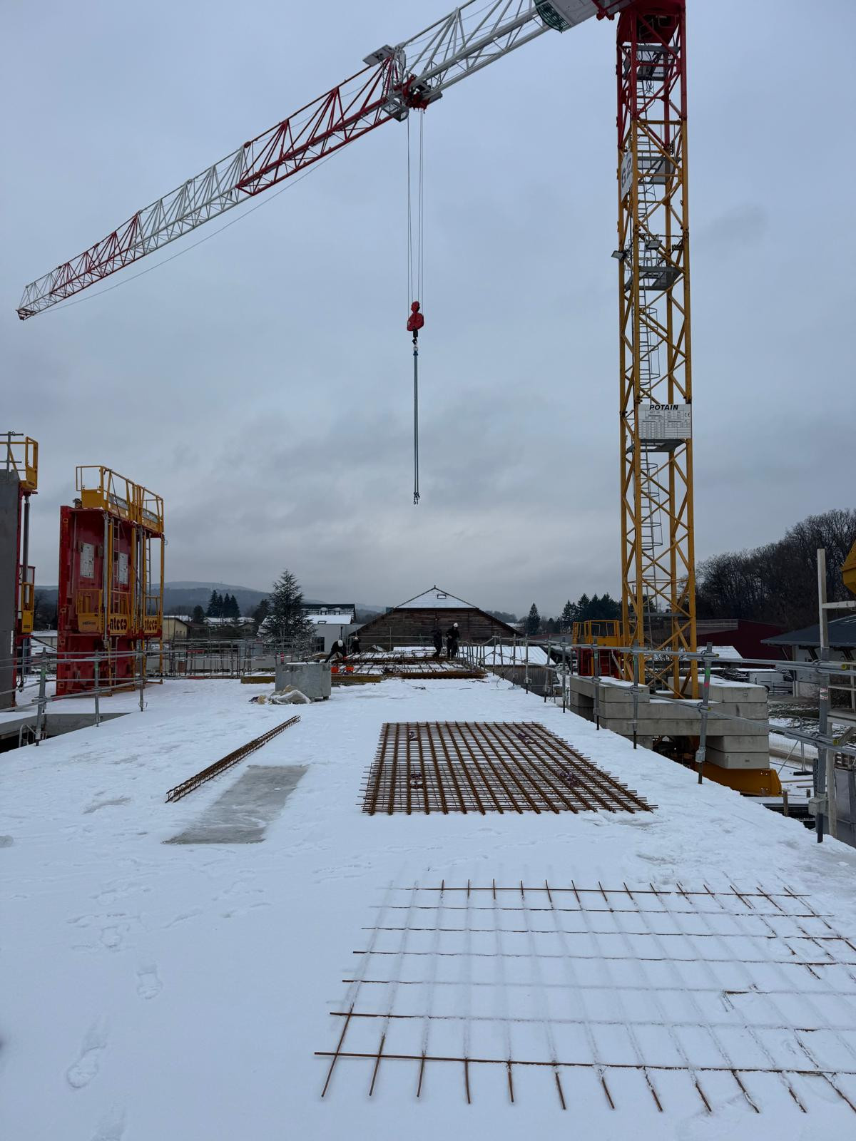Les fondations des deux bâtiments (tertiaire & atelier) sont terminées depuis fin novembre, et déjà le chantier change de visage semaine après semaine.