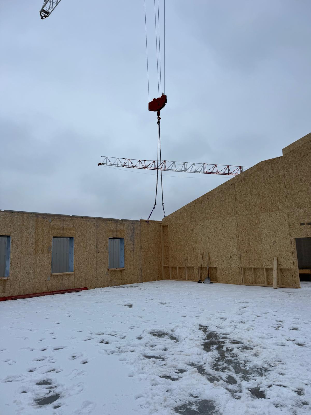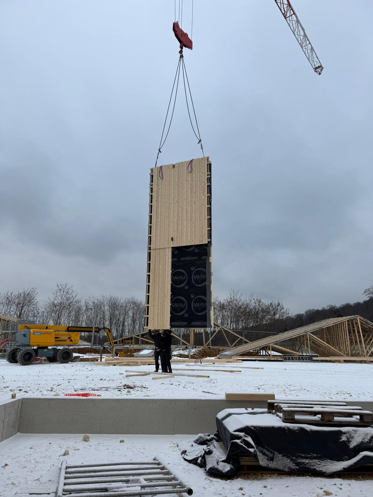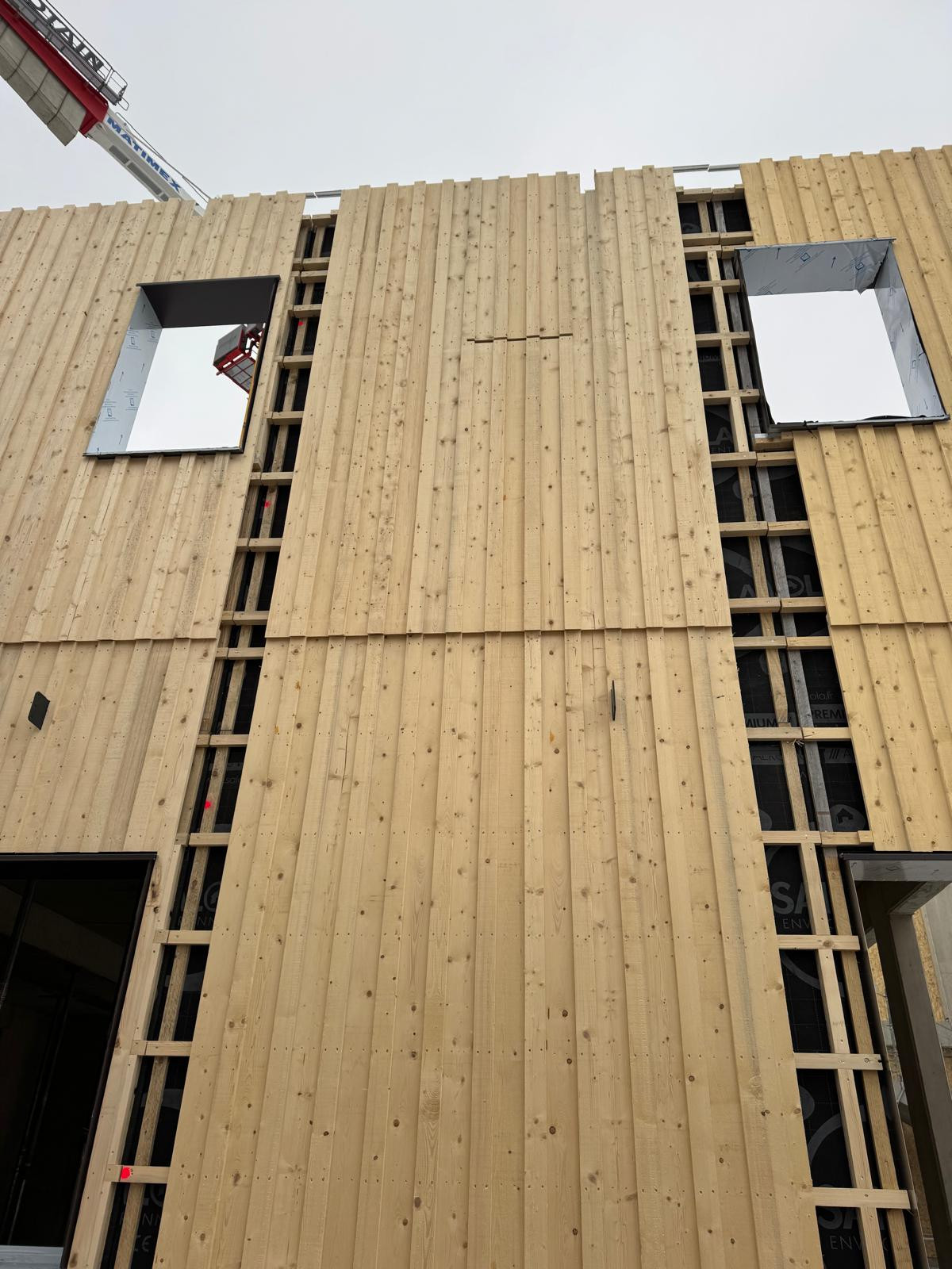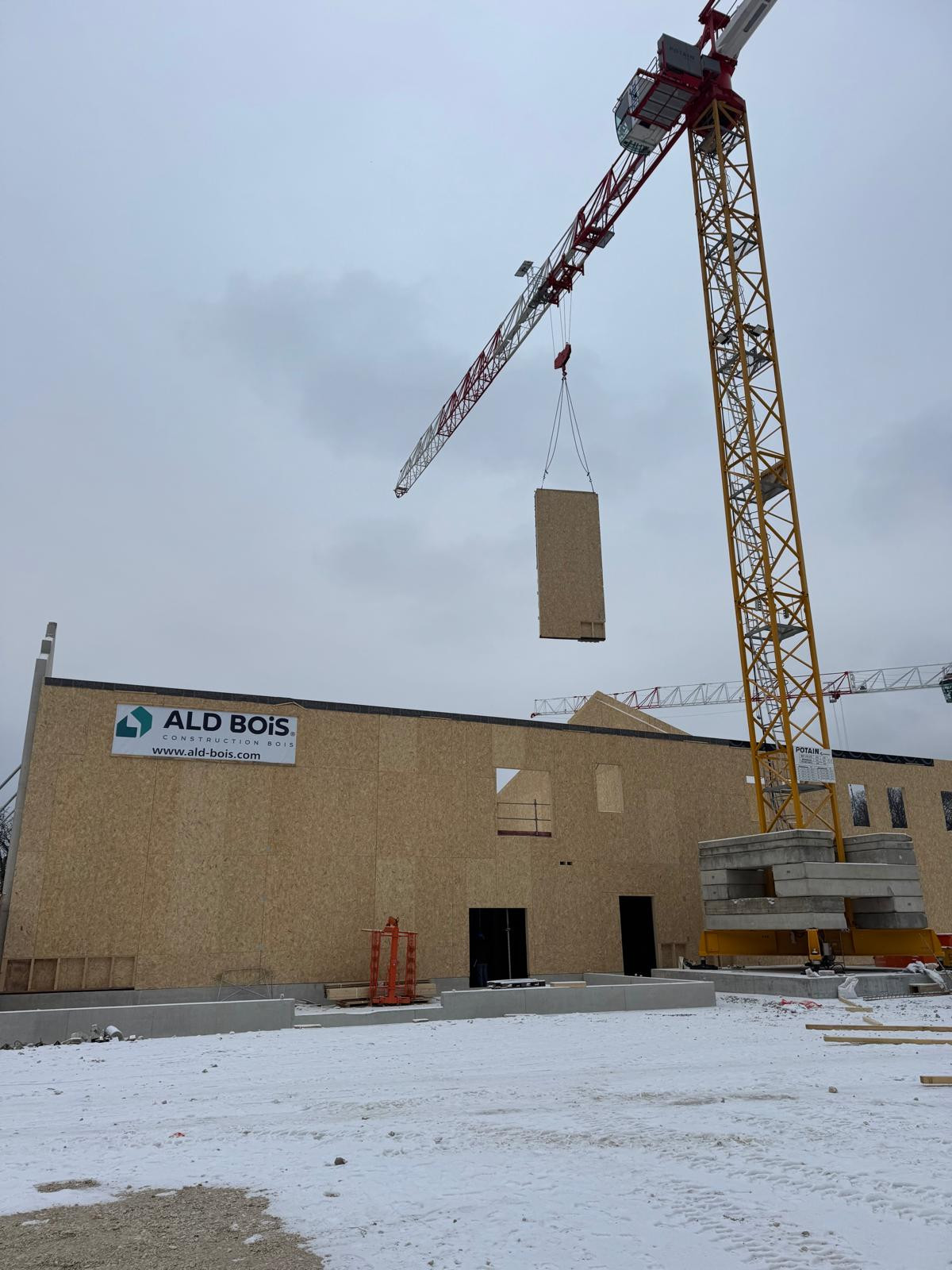 Certaines parties de la charpente sont d’ailleurs déjà prémontées sur site en ce moment même, illustrant la rapidité avec laquelle le bâtiment prend forme !